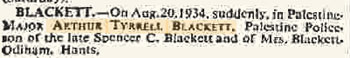 1922 Feb 21 in Blue Book as Deputy Supt at Jerusalem, Arthur Tyrrell Blackett