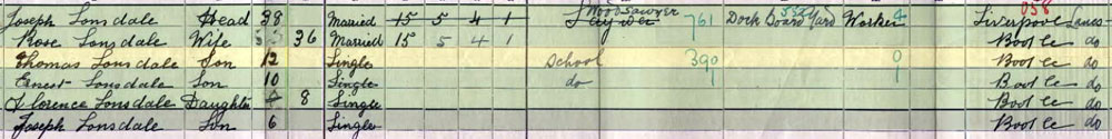 1911 census at 36 Hood St Peel Rd Bootle