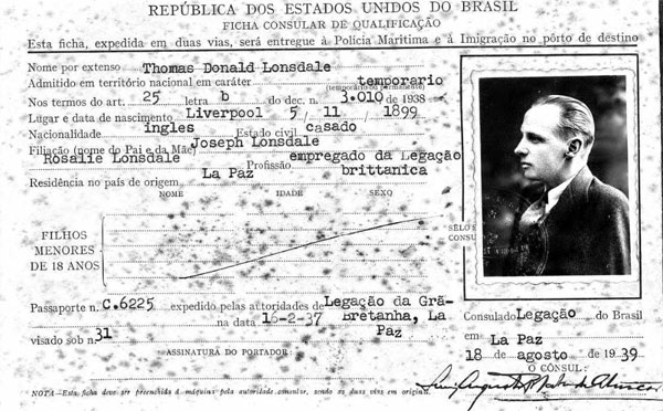 1942 He gets a Brazil transit visa to get to La Paz, where he was working for the British Embassy