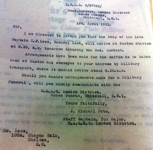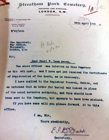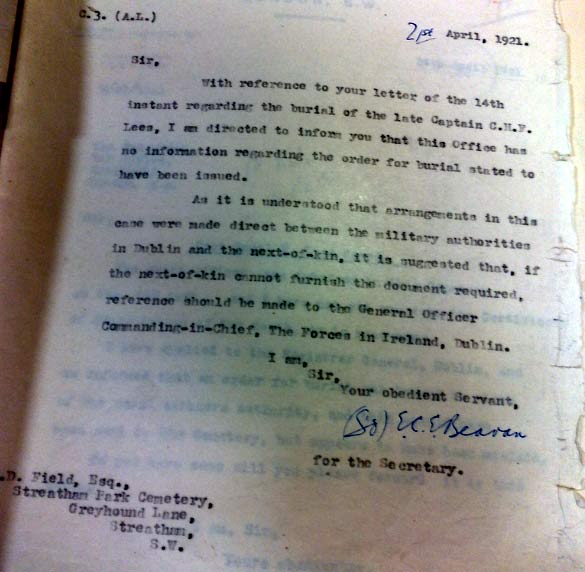 C H F Lees Burial at Streatham cemetery