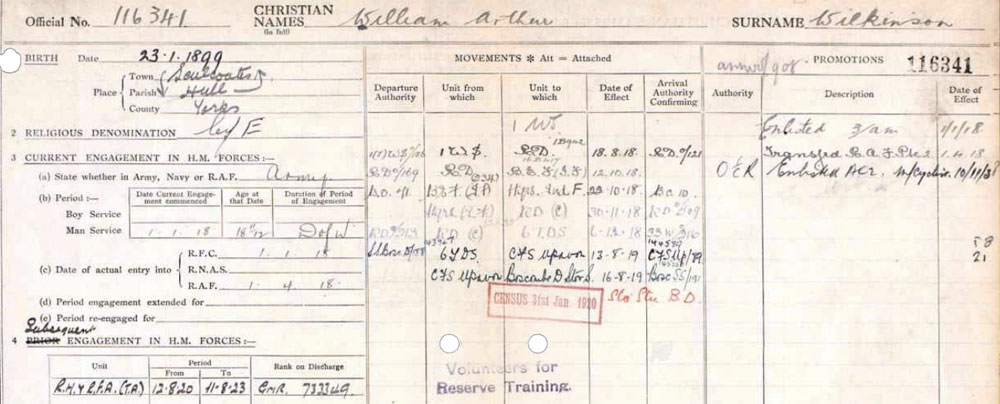 1918 Jan 1 Enlisted in RAF . Correct birthday. Nok is Thomas Arthur Wilkinson, Cobden Cotts, Lake St, Hull