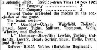 1921 Nov 14 A football match between L Coy and F Coy