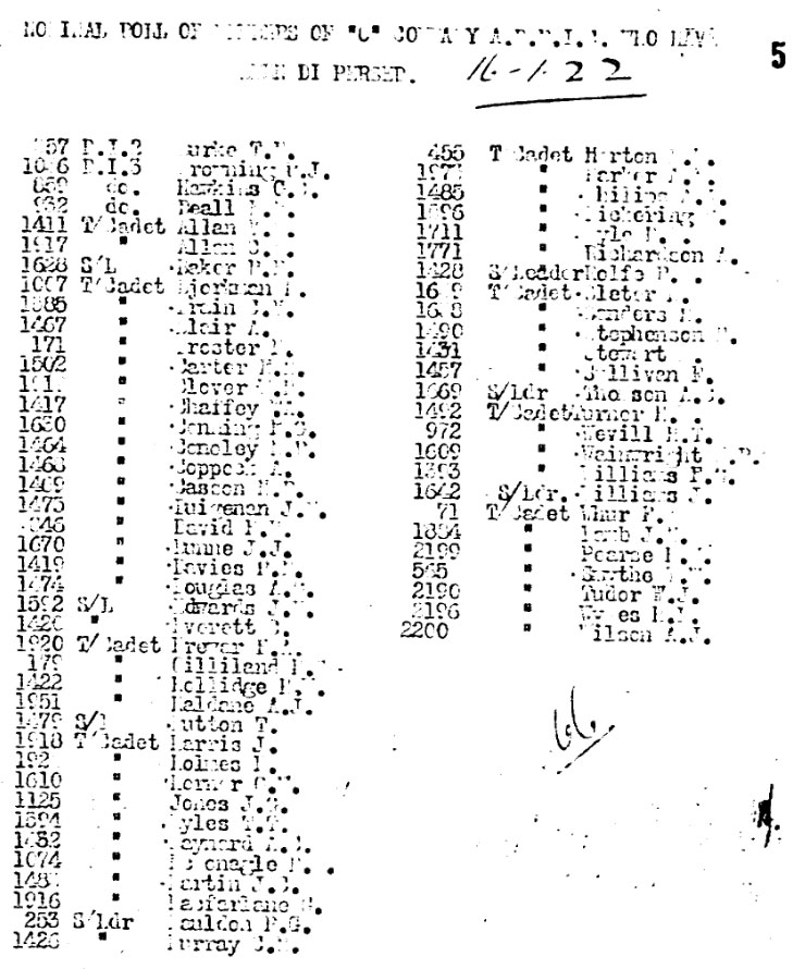 The Nominal Roll of O Coy on Dispersal