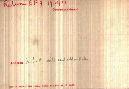 1922 Jan 14 Discharged at demobilisation of ADRIC