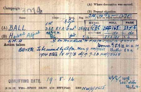 1916 Sep 14 Gazetted MM. 38924 Sjt. H. A. Ball, R.F.A.