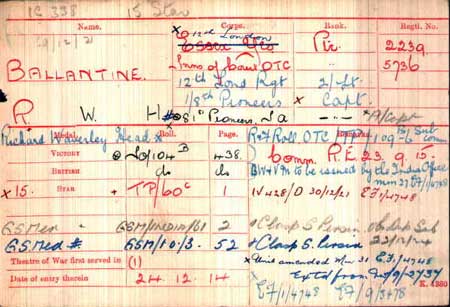 1915 Oct 20. Wessex Divisional Engineers. The undermentioned Privates, from the Inns of Court Officers Training Corps, to be Second Lieutenants. Richard Waverley Head Ballantine.