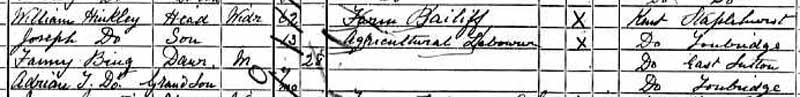1891 census at Highfield cottages, Tonbridge.