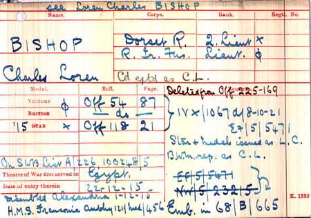 1915 Jan 26 . The undermentioned to be temporary Second Lieutenants. Charles Loren Bishop.