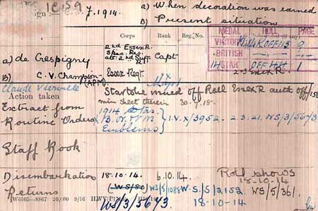 1912 Jul 17. 3rd Battalion, The Essex Regiment, Captain Claude Vierville Champion de Crespigny, retired pay, late The Duke of Edinburgh's (Wiltshire Regiment), to be Captain under the provisions of Article 510, Royal Warrant for Pay and Promotion, 1909, with seniority as from 19th March, 1910.