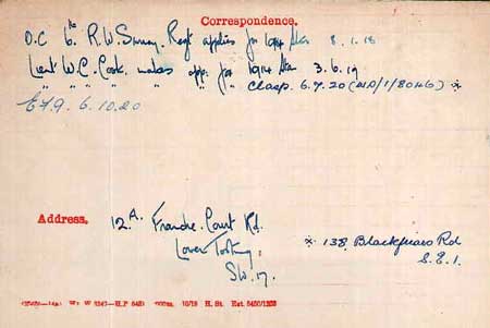 1919 Jul 30. E. Surrey. R.—Lt. W. C. Cook, M.C., retires., receiving a gratuity.and is granted the rank of Major.