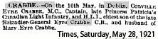 1915 Jun 22. Gazetted MC. Lieutenant C. E. Crabbe, Princess Patricia's Canadian Light Infantry