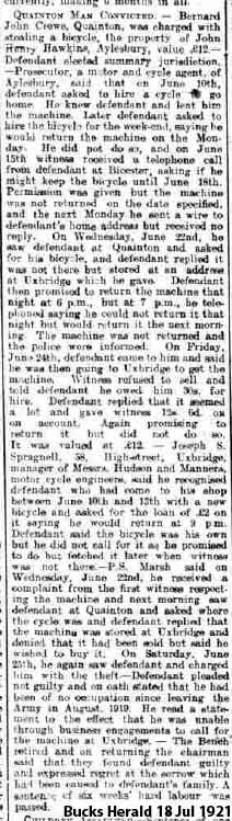 1919 Jul 23. 2nd Lt. B. J. Crewe (Oxf. & Bucks. L.I.) relinquishes his commn. on account of ill health contracted on active service.