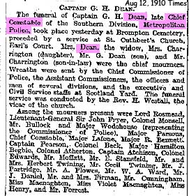 Starting with the school register for Clifton School, Bristol has Dean, G. H. Son of G. H. Dean, Clifton. (School House. Class. III— VI ; left July. 18?7. Corpus Christi Coll., Cambridge. R.M.C, Sandhurst. Capt. 12th Lancers.Military Sec. to the Governor of Bombay. Appointed Assistant Chief Constable in the London Police, 1887.)