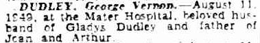 1884 Oct 28. born Oxford, son of a solicitor George Dennis D Dudley