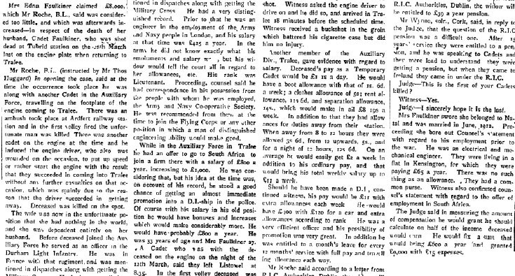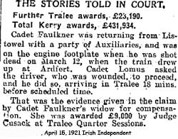 1921 Apr 16 His widow is awarded £9000 compensation at Tralee Quarter Sessions.
