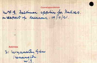 1921 Mar 17. Walter Vernon Falkiner buried in East Sheen Cemetery. Burial Number 2334. Section C Grave 510