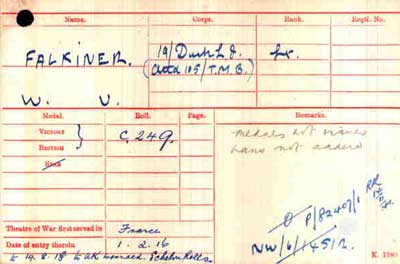 1921 Sept 21 Relinquishes his commission on completion of service. Durham L.I. Temp. Lt. W. V. Falkiner, MC. and retains the rank of Lt. Gazette . One of the quirks of army beauracracy