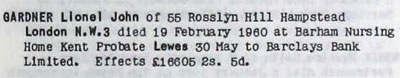 1939 Register. Living at 20 Tanza Road , Hampstead, London. He is "of private means" It is a guest house, and he is single.