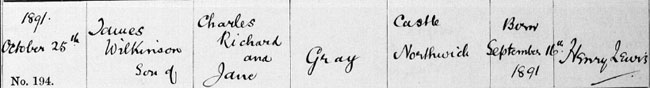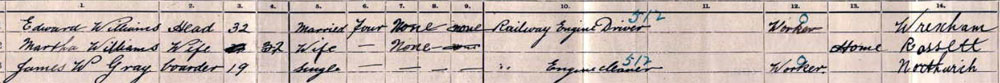 1921 census at 64, North Lonsdale Street, Stretford, Lancashire. James Wilkinson Gray Head Male 1891 29 Northwich, Cheshire, England - Engineer Labourer Emily Gray Wife Female 1891 30 Knutsford, Cheshire, England