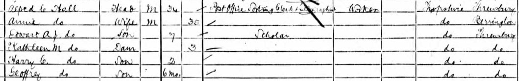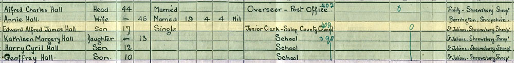 1911 census at 39 Hotspur St, Shrewsbury