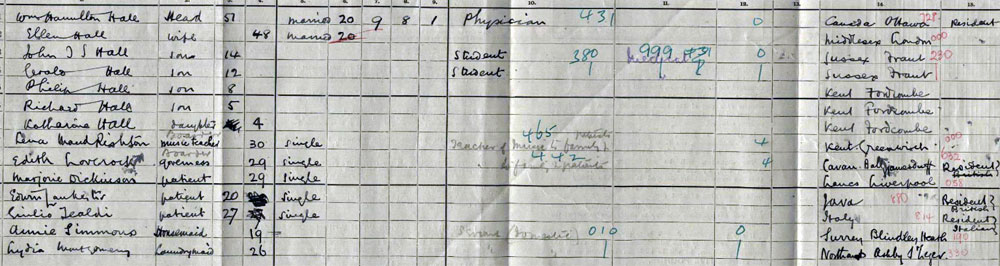 1911 census at Chafford House, Fordcombe, Tunbridge Wells