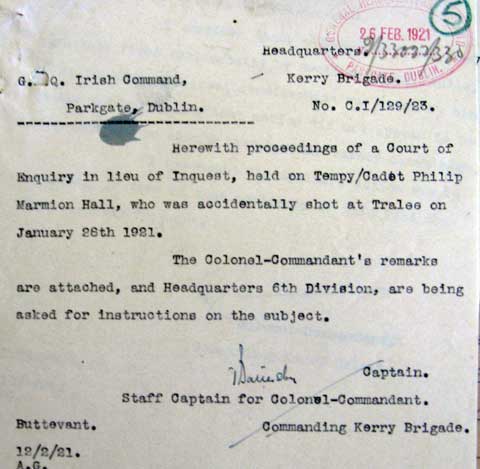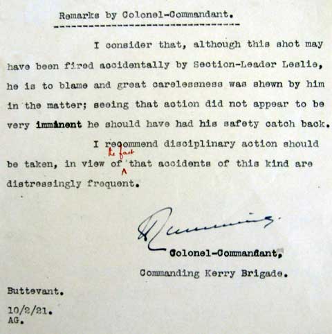 1921 Jan 28 Shot accidentally in Tralee