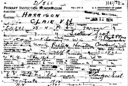 1924 Jan 12. Pre-examined in Canada for entry to USA