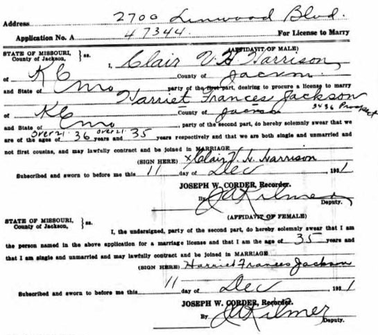 1931 Dec 11. marries in Jackson, Missouri to Harriet Frances Jackson
