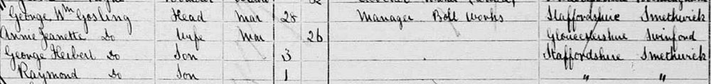 1911 census at Philanthropic Society's Farm School Reformatory (which was where he had served his original sentence for bicycle theft) , He has reverted to George Wm Gosling