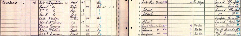 1911 census at Braehead House, Bearsden, Dunbartonshire.
