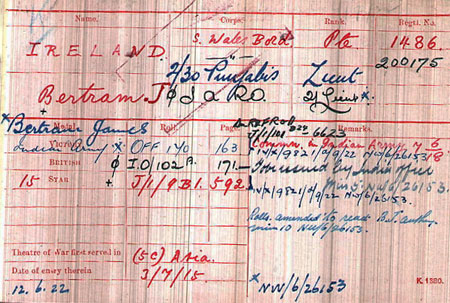 1896 Oct 15 Born Gloucestershire. Illegitimate, Bertram James Swinford. Florence Swinford married James Ireland in 1899.