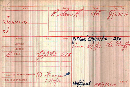 1916 Oct 21. Gazetted MM. G.2344 L./C. J. Johncox, R. Suss. R.