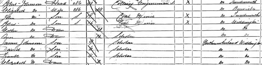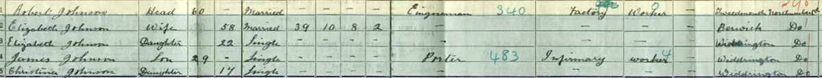 1891 census at Widdington Colliery, Widdrington, Northumberland