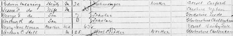 1901 census at 14, Winstonian Terrace, Cheltenham