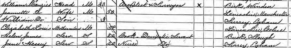 1911 census at Golspil Englefield Green