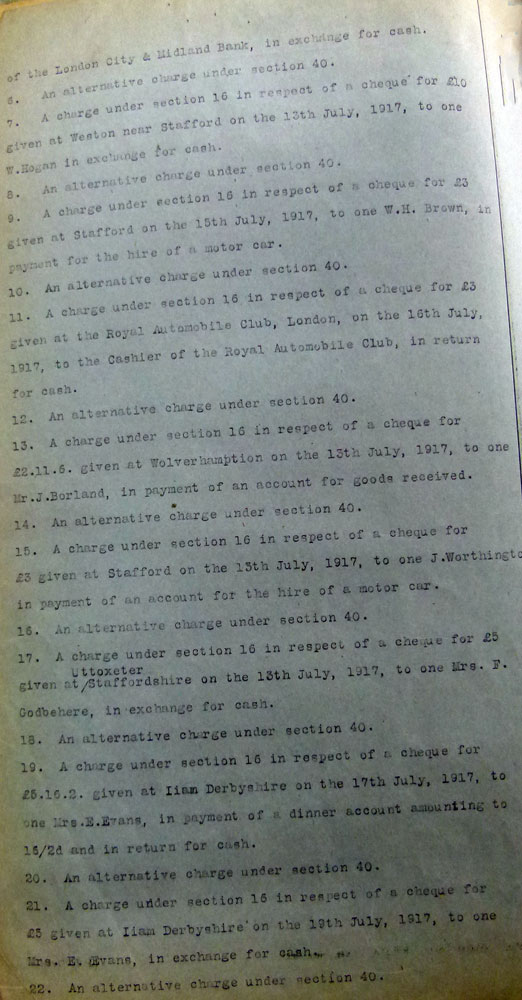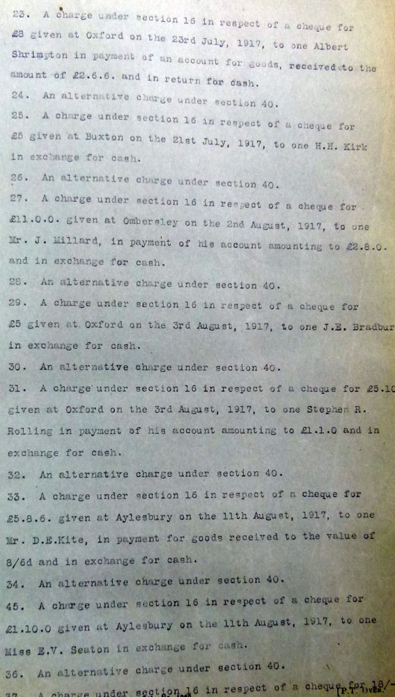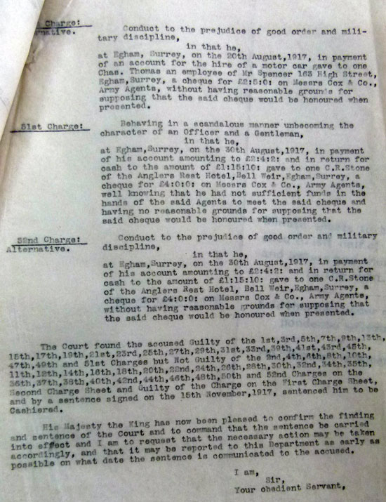 1917 Nov 15. Cashiered after Court Martial. Duff cheques and AWOL