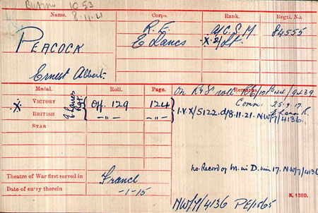 No date of birth known as not on RIC register.. This is only E A Peacock with MIC who was commissioned. Only one in WO338. And only one in LG. He seems to have been chosen specially, but I cannot crack him. I have used the details of the MIC man, which may be correct