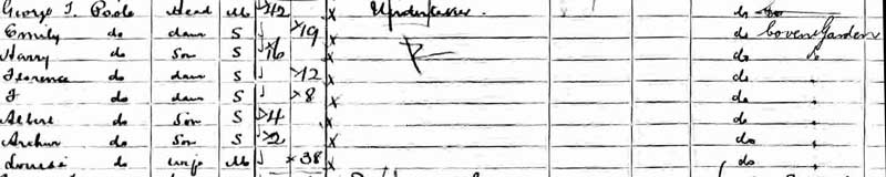 1901 census living with parents at 14 Bedfordbury, St Martin in the Fields, London.