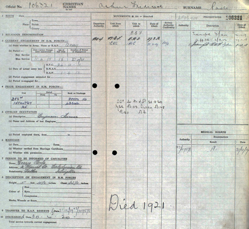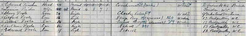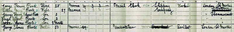 1911 census, his mother has "remarried" and has the younger children at 11 Coomer Road Fulham SW London. Arthur Poole is an errand boy. I can find no record of a marriage.
