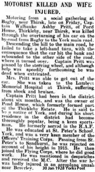 1928 Jan 27 Died at the age of 31 in an automobile accident near Bagby in North Yorkshire.