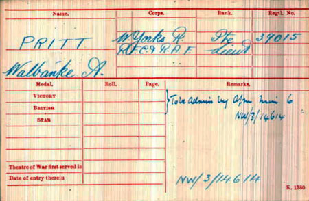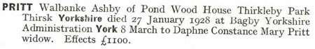 1926 Jan/Mar Married in York to Daphne C M Evans. There is no record of any children and his wife was still referred to as Mrs. Pritt until her death in 1965. Records indicate Lt Pritt was a commercial artist and poultry farmer until his death
