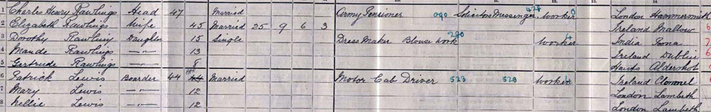 1911 census His Parents I am fairly sure, within 1/2 mile of Upper Kennington Lane on MIC, at 1 St Barnabas Villas Guildford Road Lambeth