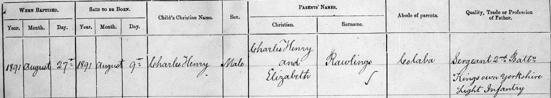 1901 Census Aged 9, born India Charles Rawlings at Royal Hibernian Military School, Dublin