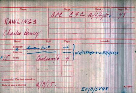 I have just acquired a MM group but he seems of moved about a bit, I would be grateful for any info, the MM is impressed 5659. SJT.C.H.RAWLINGS. 6 / CORPS CYC:BN: ACC...... 1914 STAR 8822.L.Cpl. C.H. RAWLINGS. YORKS.L.I....... WW1 WAR MEDAL. 2.LIEUT. C. H. RAWLINGS....... WW1 VICTORY, 73.C.H.RAWLINGS. EX.FCE.CAN. What is this last unit?????, there is also a MID certificate, to 5659 C.H.RAWLINGS. ARMY CYCLIST CORPS, the group comes with WW2 39 STAR, F&G STAR, DEFENCE & WAR MEDAL, I was told he ended up in charge of a POW camp near Liverpool. 1914-1918 Forum