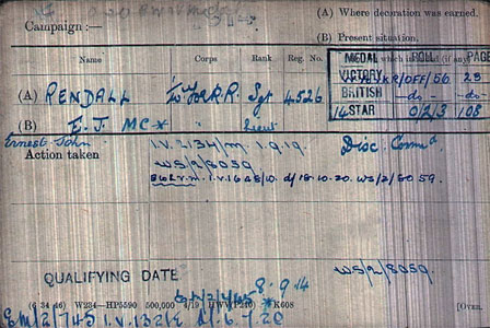 1918 Oct 15. MC Gazetted. Lt. (A./'Capt.) Ernest John Rendall, W. York. R. For conspicuous gallantry during an attack, when he was in command of the sup- port company. By his fine leadership and resource he materially added to the success of the assault, and helped in re-organising the ground won, assisting another company the officers of which had all become casualties