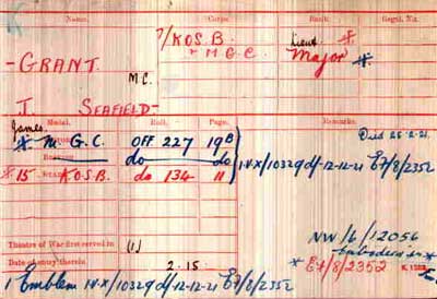 1916 Jan 1. MC Gazetted. Kings Own Scottish Borderers. Seafield-Grant, Temporary Lieutenant J .“For distinguished service in the field.” Twice MID