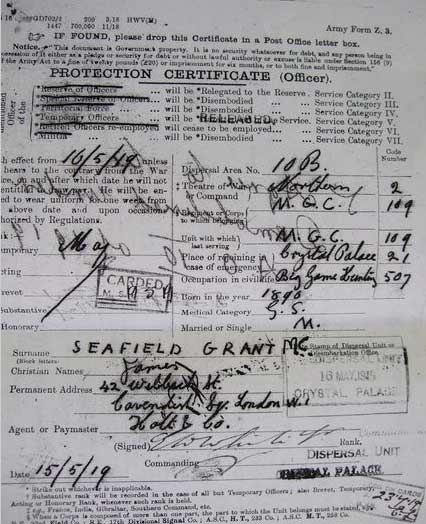 1919 May 16 . Demobilised. Leaves Army