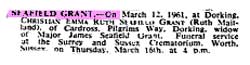 1961 His widow died in Dorking