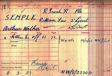 1923 Feb 2. Living in Belfast when he applies for his medals