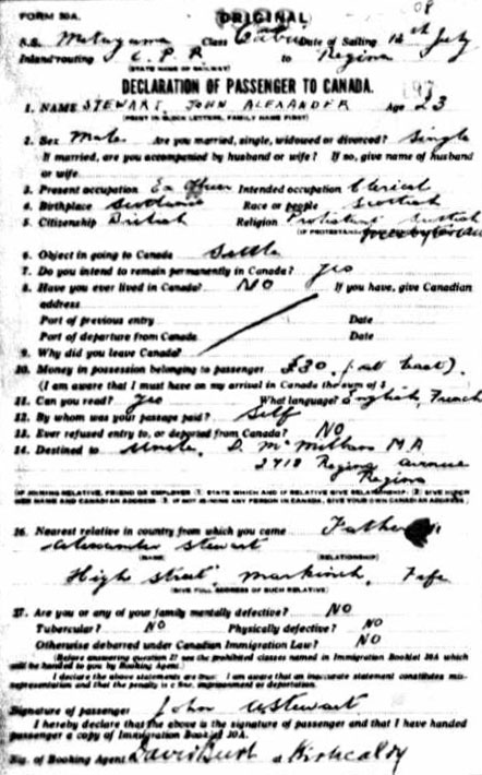 1922 Jul 25. Arrived in Canada intending to settle. I lose track of him at this point.